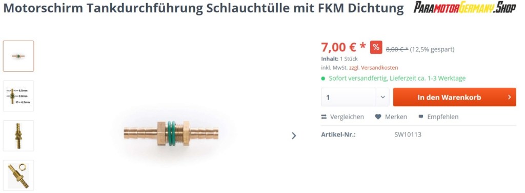 Ganz wichtig ist natürlich eine passende Tankdurchführung. Die von mir angebotenen Modelle sind mit dem Tygon Schlauch kompatibel. Ihr braucht in der Regel 3 Stück, 1x für die Benzinleitung zum Hauttank/Motor und 1x für die Belüftung des Tanks und 1x für den zusätzlichen Anschluss im Hauttank.