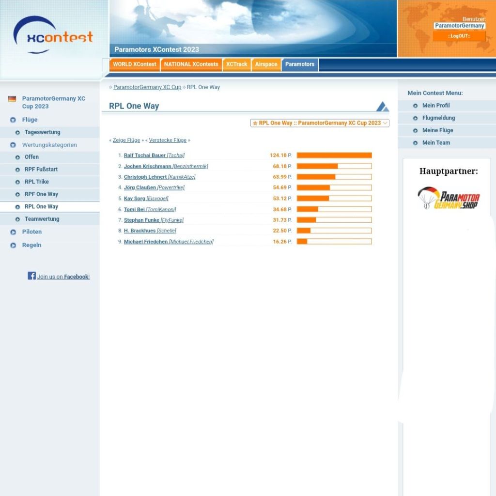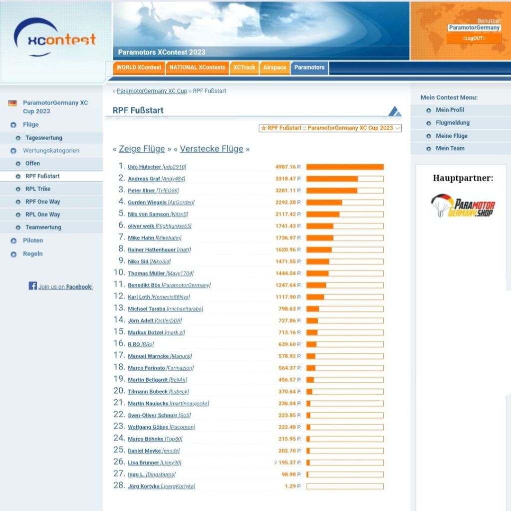 Ich freue mich über jeden Piloten der mit macht und sich im Streckenfliegen probiert. Lasse dich nicht von den großen Distanzen der führenden abschrecken, jeder hat Mal klein angefangen und jeder sollte es nur so weit steigern wie er Spaß daran hat.